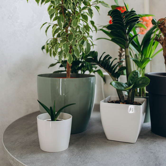 - Благодаря нейтральному цвету кашпо сочетает в себе простоту и элегантность.