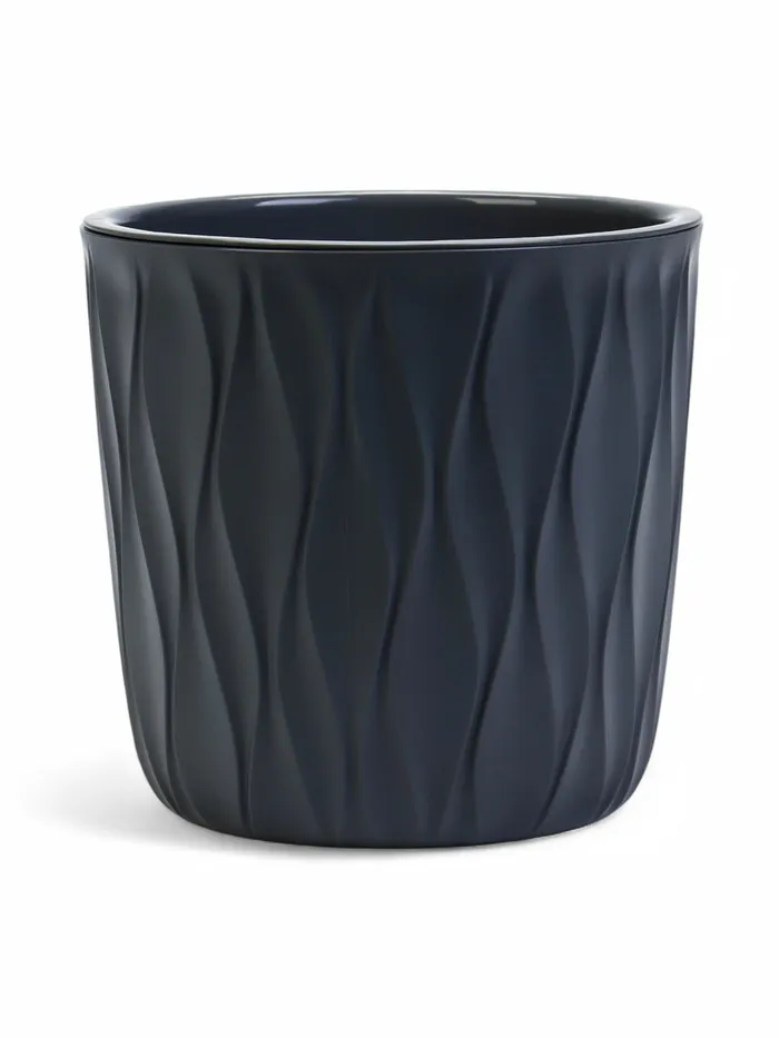 Серое кашпо Desert с волнистой формой — это выразительное решение для комнатных растений. Горшок сочетает функциональность двойной конструкции с оригинальным дизайном.