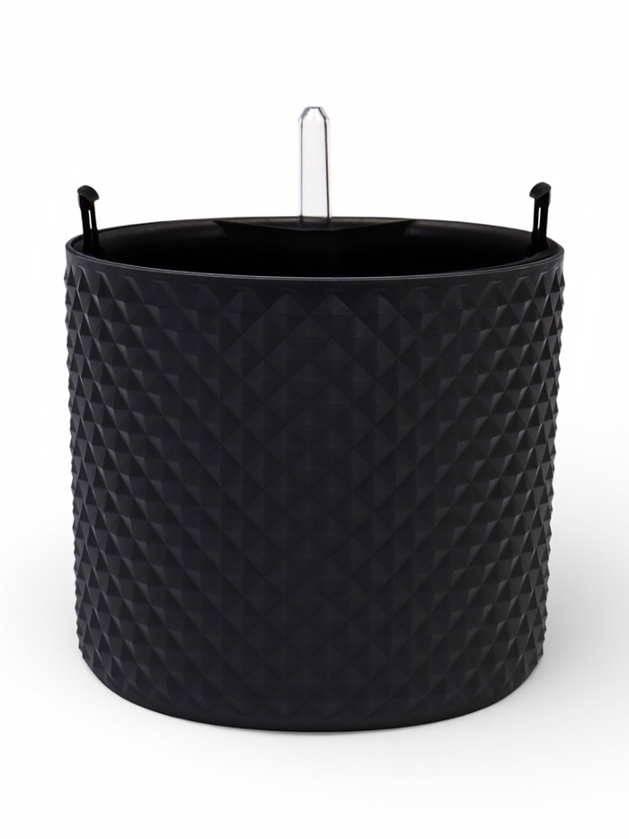 Кашпо для цветов «Фасет», 3.5 л, d=18 см, h=16.5 см, пластиковое, с автополивом, со вставкой, серое