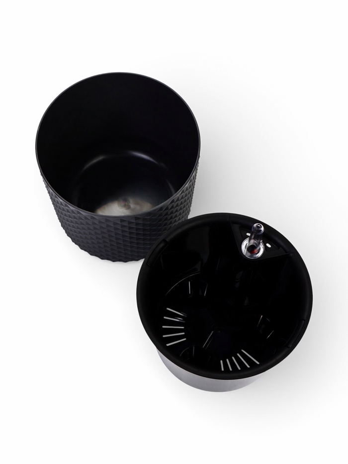 Кашпо для цветов «Фасет», 3.5 л, d=18 см, h=16.5 см, пластиковое, с автополивом, со вставкой, серое — Характеристики