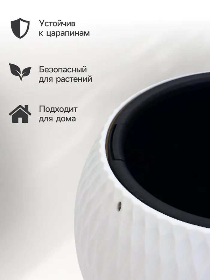 Особенности использования: кашпо выполняет декоративную функцию. Внутренний горшок с дренажным отверстием помещается внутрь — это обеспечивает правильный уход за растением. «Растение» подходит для гостиных, кухонь и помещений в эко-стиле.