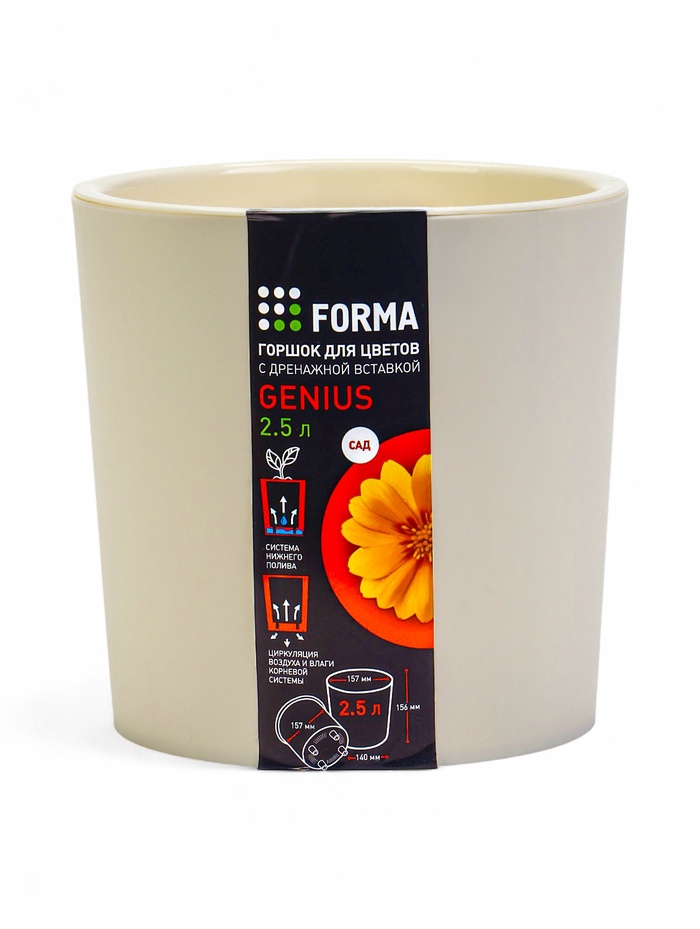 Кашпо для цветов Genius, 2.5 л, d=15.7 см, h=15.6 см, пластиковое, со вставкой, белое — Характеристики