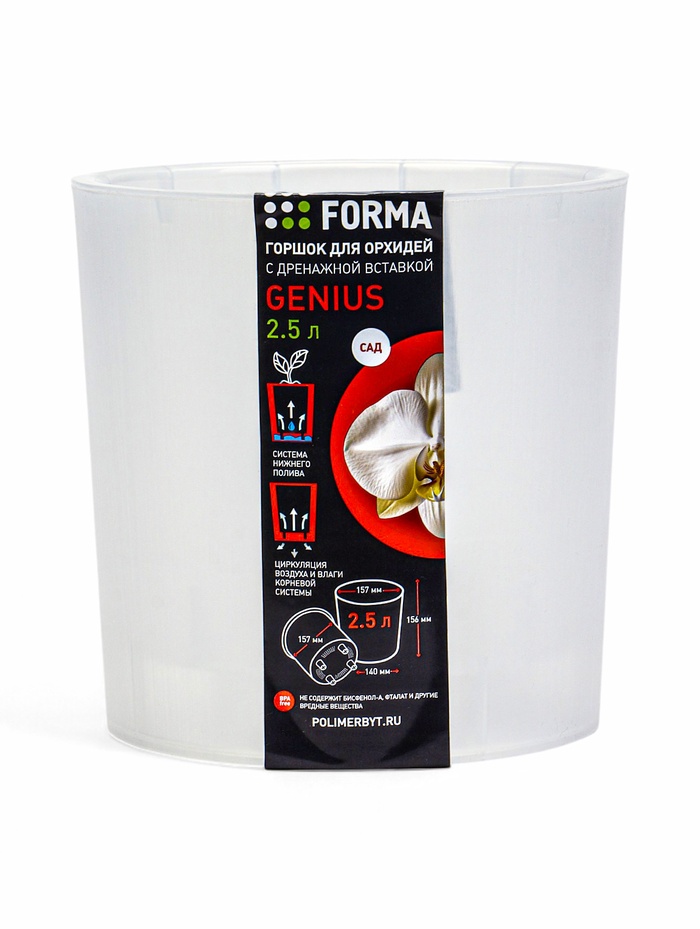 Кашпо для цветов Genius, 2.5 л, d=15.7 см, h=15.6 см, пластиковое, со вставкой, прозрачное — Характеристики