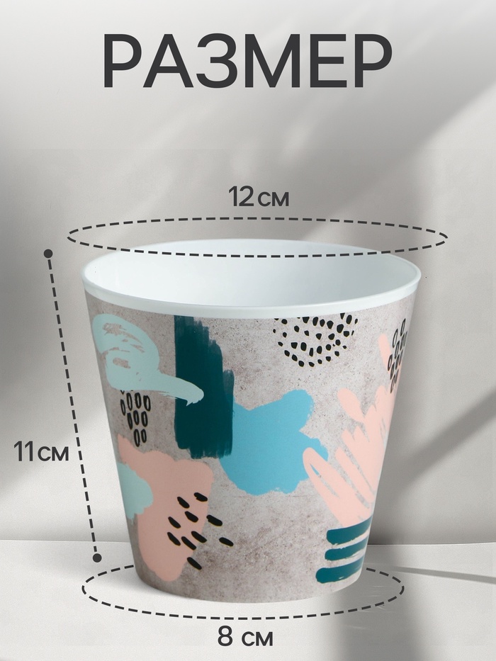 Кашпо для цветов «Яркие мазки», 800 мл, d=12 см, h=11 см, пластиковое — Характеристики