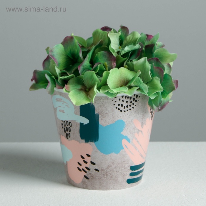 - Художественный дизайн: разноцветные мазки образуют абстрактную композицию. Каждое кашпо имеет индивидуальный рисунок.