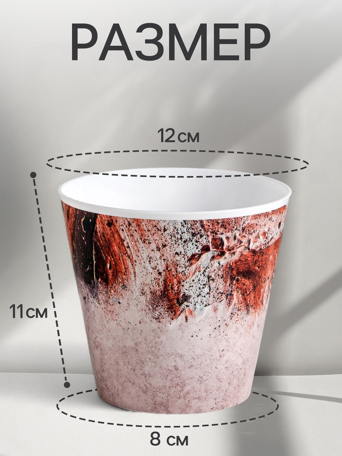Кашпо «Лофт» — настольное кашпо с природной эстетикой. Абстрактный рисунок в земляных тонах создаёт ощущение текстуры натурального камня. Пластиковое кашпо служит для декоративного размещения комнатных растений.