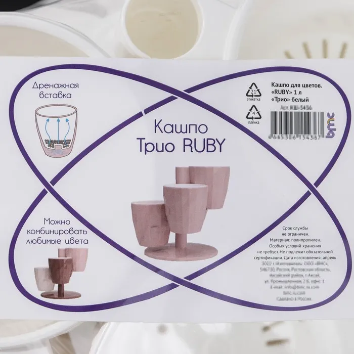 Кашпо для цветов многоярусное Ruby «Каскад», 3 шт, 1 л, белое — Характеристики