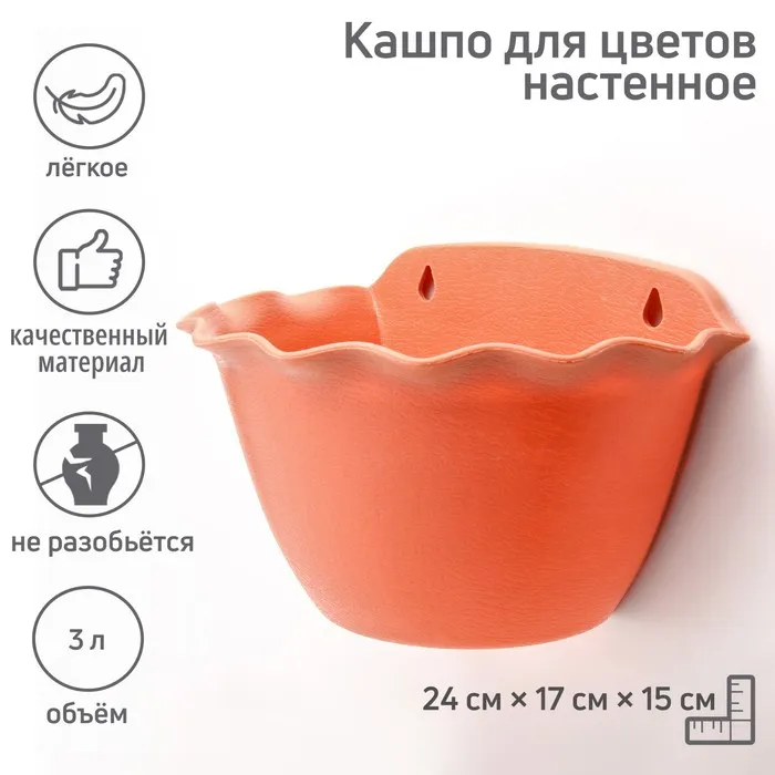 Кашпо для цветов настенное «Волна», пластик, 3 л, МИКС — Характеристики