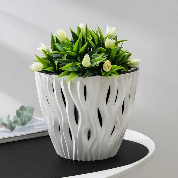 - Кашпо изготовлено из высококачественных материалов, что обеспечивает его долговечность и устойчивость к внешним воздействиям.