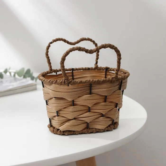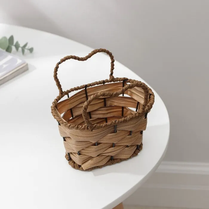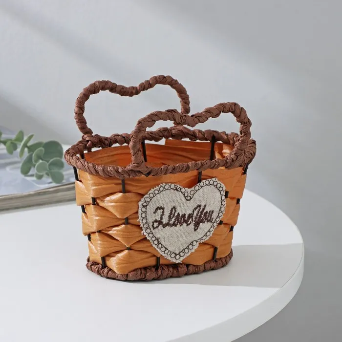 Кашпо для цветов плетёное с ручками Доляна «Сердце», 13.5×10×12.5 см, светло-коричневое — Характеристики