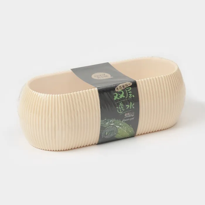 Кашпо для цветов с поддоном Rasfill, 1.3 л, 20.5×8.5×7 см, овальное, бежевое — Характеристики
