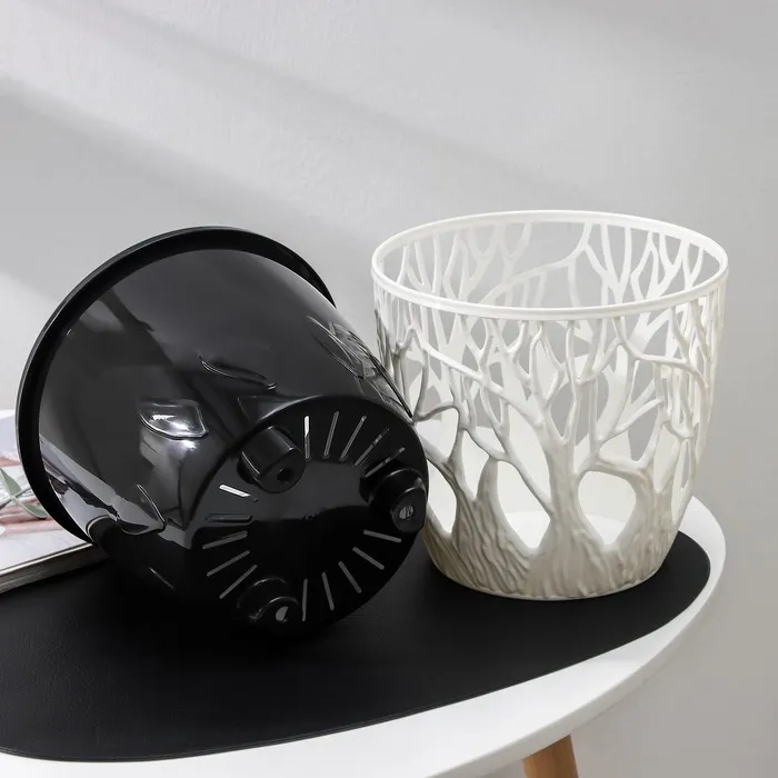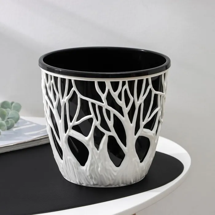Кашпо для цветов со вставкой «Форест», 3 л, бело-чёрное