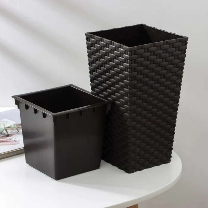 Кашпо для цветов со вставкой IDEA «Ротанг», 4.2 л, вставка 1.5 л, пластик, коричневое — Характеристики