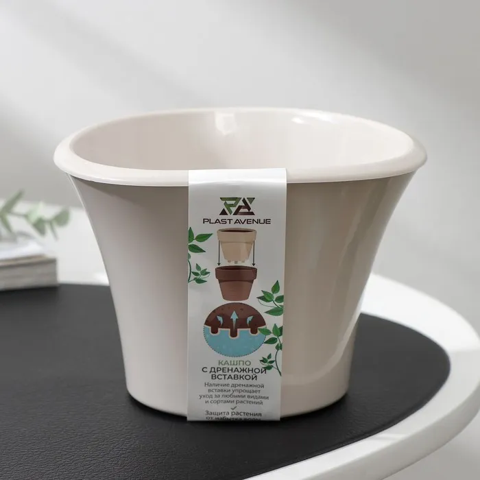 Кашпо для цветов со вставкой «Лагуна», 600 мл, d=13 см, h=9 см, бежевое — Характеристики