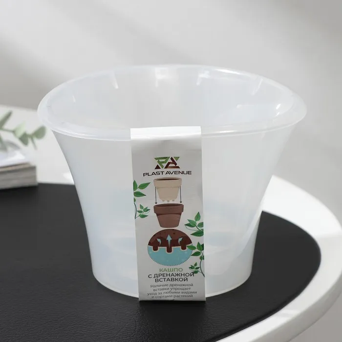 Кашпо для цветов со вставкой «Лагуна», 600 мл, d=13 см, h=9 см, прозрачное — Характеристики