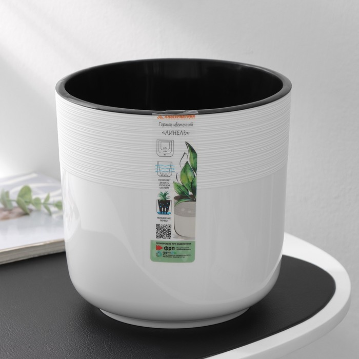Кашпо для цветов со вставкой «Линель», 4,5 л, d=19 см, h=19 см, пластик, белое
