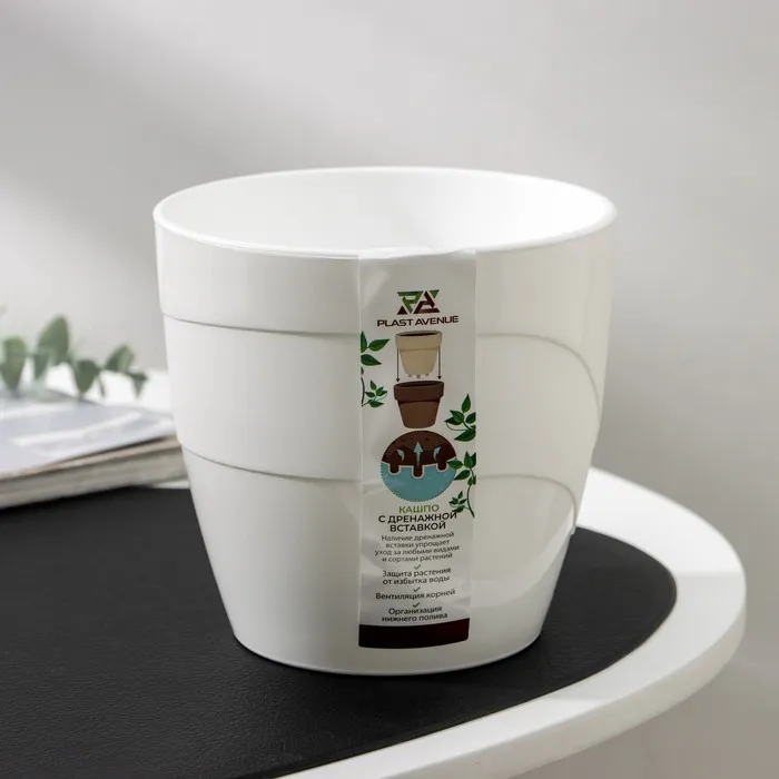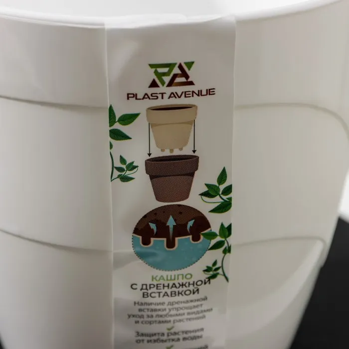 Кашпо для цветов со вставкой Plast-Avenue «Грация», 1.2 л, пластик, белое — Характеристики