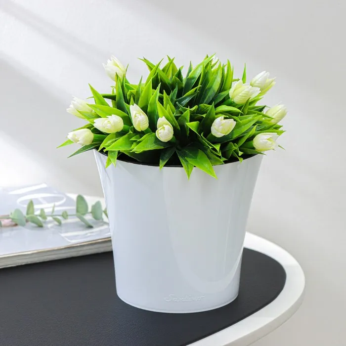 Кашпо для цветов со вставкой Plast-Avenue «Грация», 1.2 л, пластик, белое