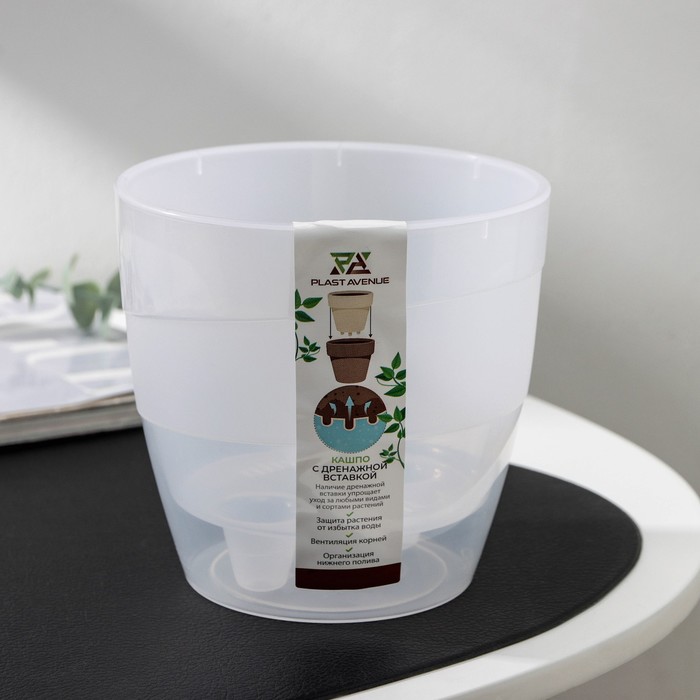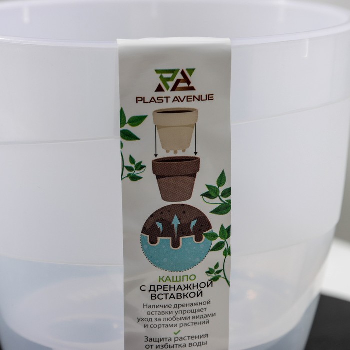 Кашпо для цветов со вставкой Plast-Avenue «Грация», 1.2 л, пластик, прозрачное