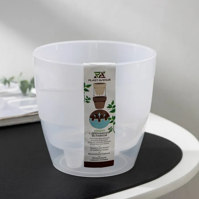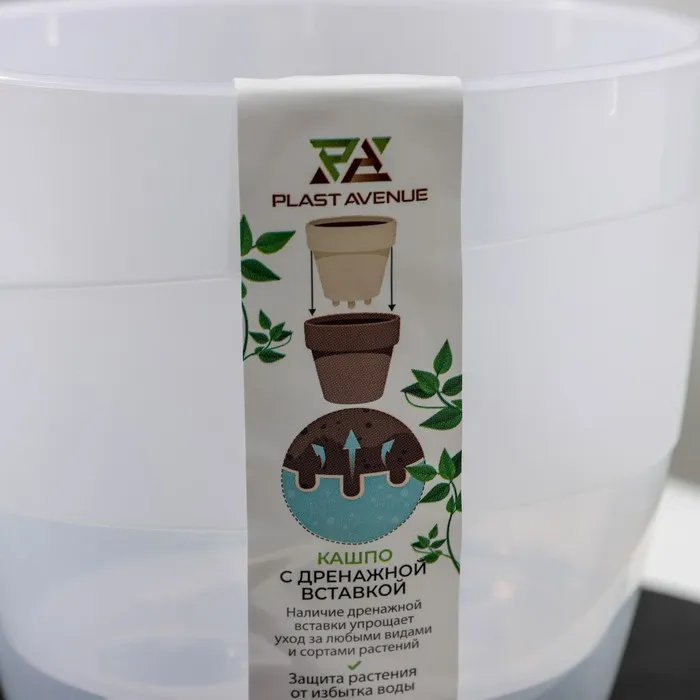 Кашпо для цветов со вставкой Plast-Avenue «Грация», 1.2 л, пластик, прозрачное — Характеристики