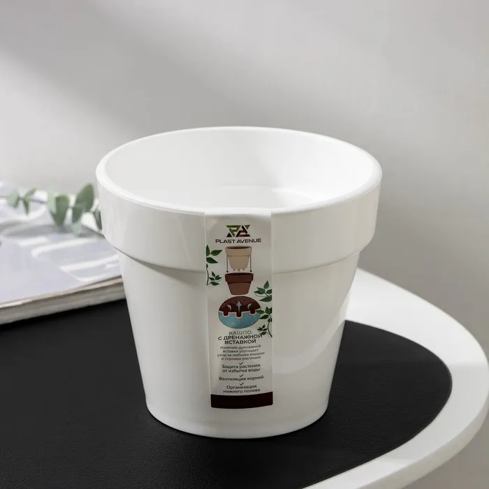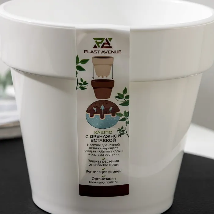 Кашпо для цветов со вставкой Plast-Avenue «Порто», 1 л, пластик, белое — Характеристики