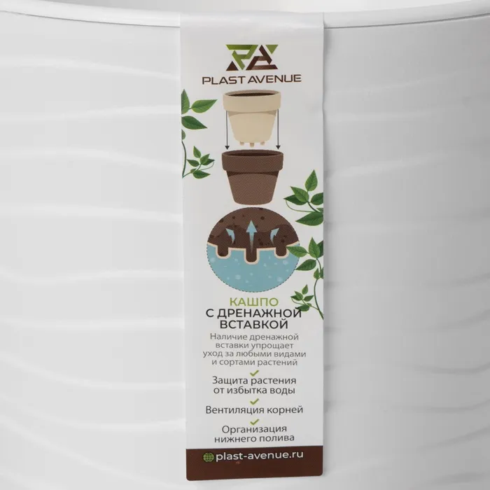 Кашпо для цветов со вставкой Plast-Avenue «Валенсия», 2.8 л, пластик, белое — Характеристики