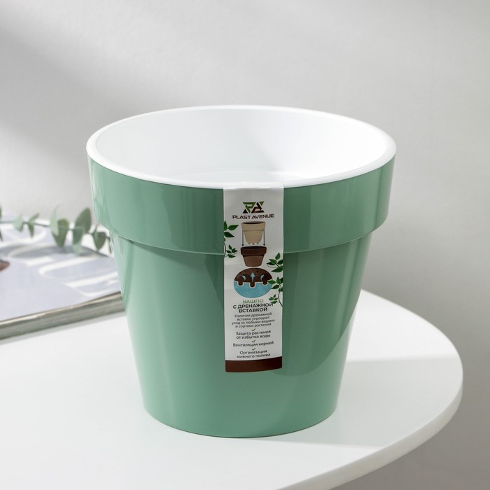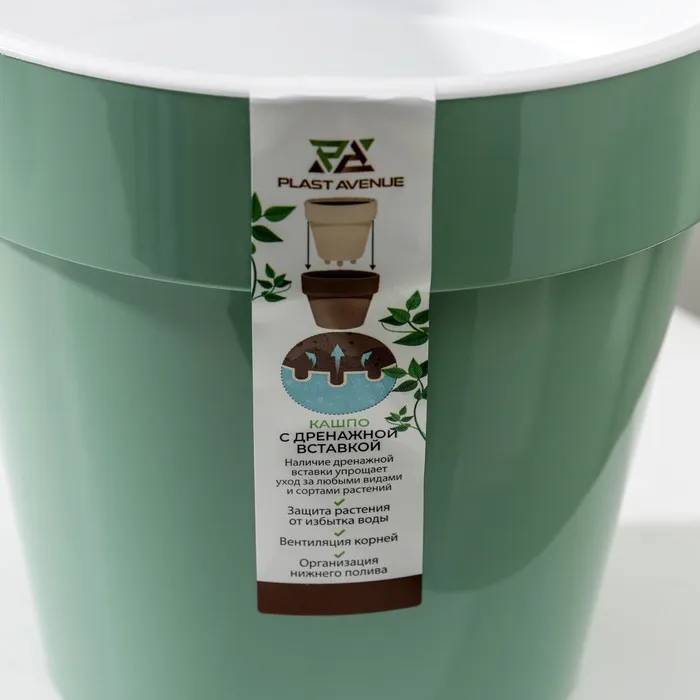 Кашпо для цветов со вставкой «Порто», 2,4 л, цвет нефритовый