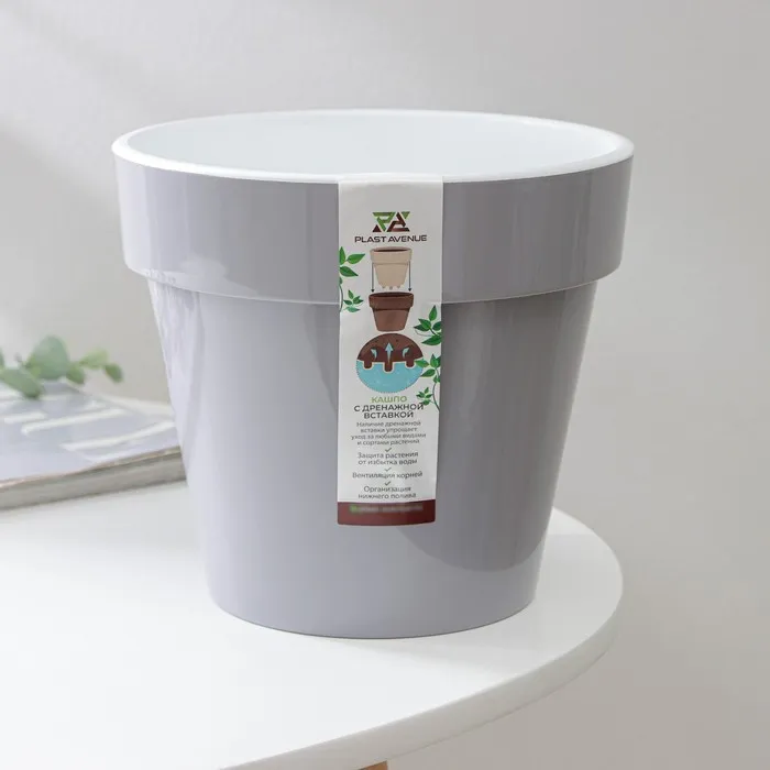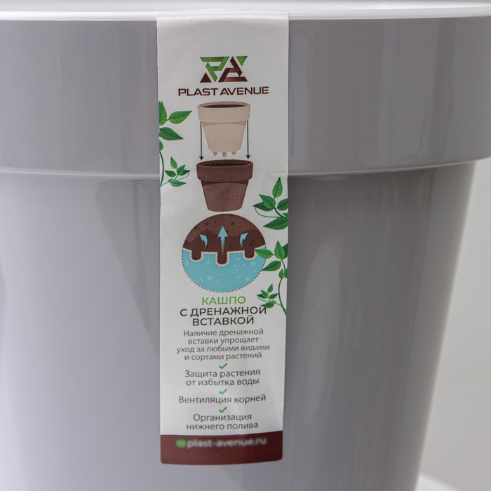 Кашпо для цветов со вставкой «Порто», 2,4 л, цвет серый — Характеристики