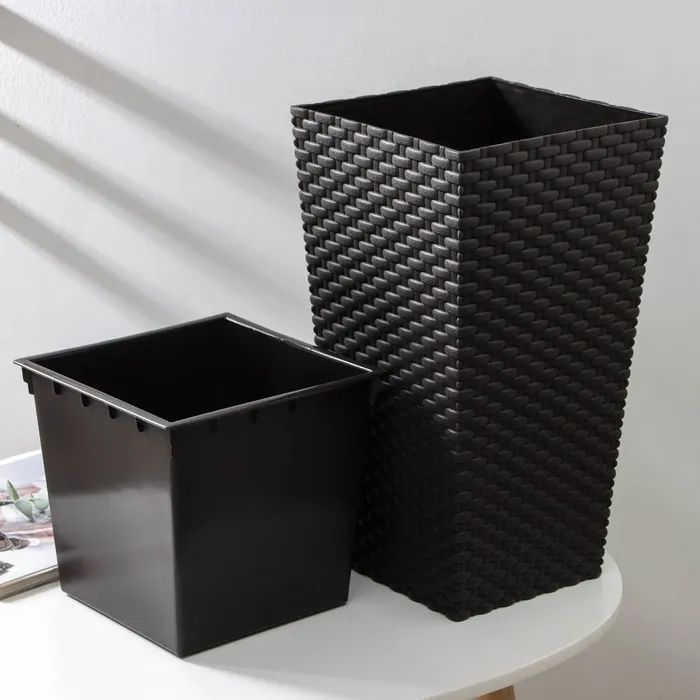 Кашпо для цветов со вставкой «Ротанг», 13 л, вставка 4,9 л, коричневое