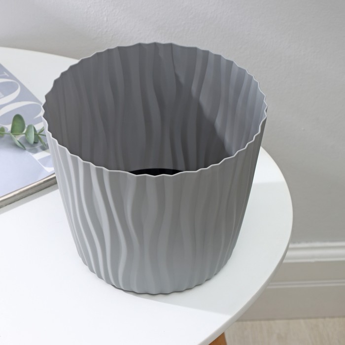 Кашпо для цветов со вставкой «Волна», 4 л, d=20 см, h=17 см, цвет серый