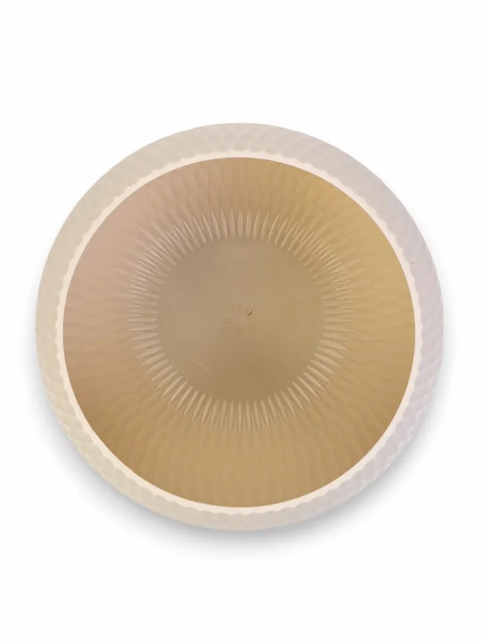 Бежевое кашпо объемом 7 литров (диаметр 36 см, высота 22 см) из прочного пластика. Классическая круглая форма с удобной вставкой для растений. Идеально подходит для размещения на столах, подоконниках и других горизонтальных поверхностях.