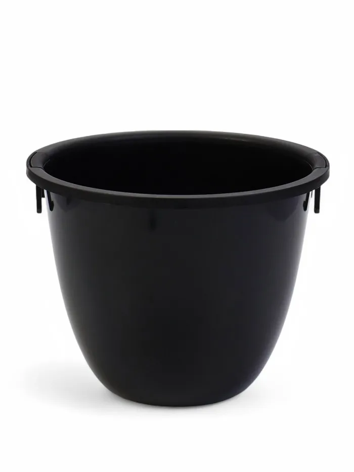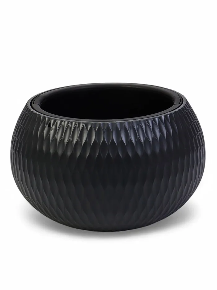 Подвесное кашпо объемом 7 литров (36×22 см) из прочного пластика с удобной вставкой. Стильная округлая форма и благородный графитовый цвет органично дополнят любой интерьер. Подходит для подвесного и настольного размещения.