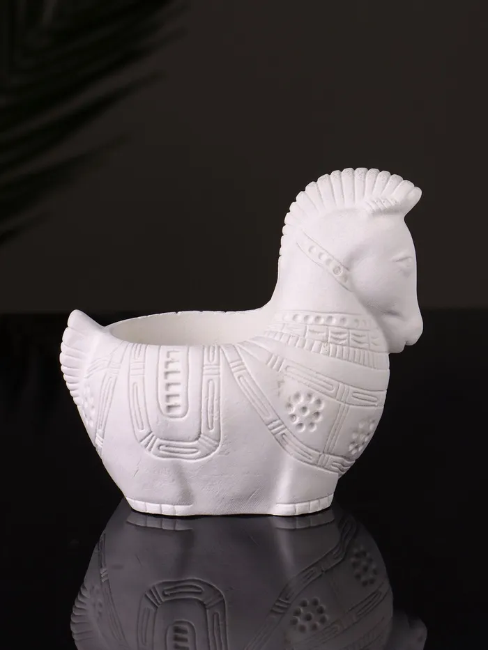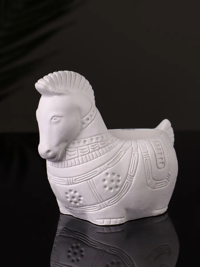 Белоснежная лошадка с изящным орнаментом — это не просто кашпо, а маленькое произведение искусства для вашего дома. Созданная из натурального гипса, она несет в себе тепло ручной работы и особую энергетику.