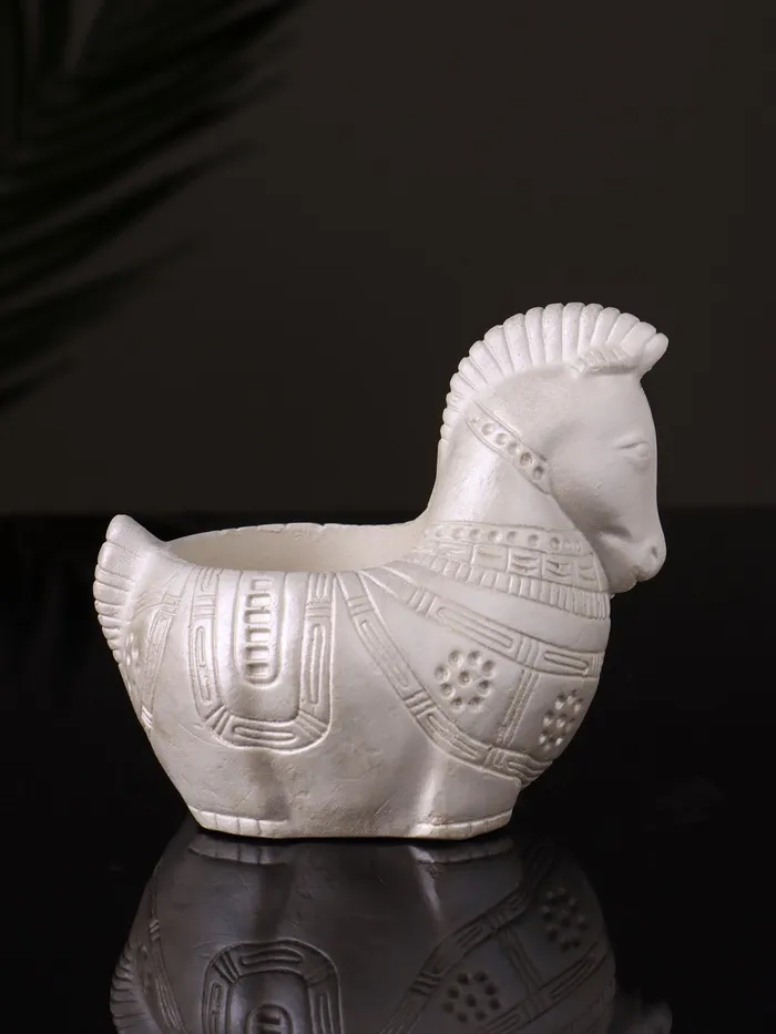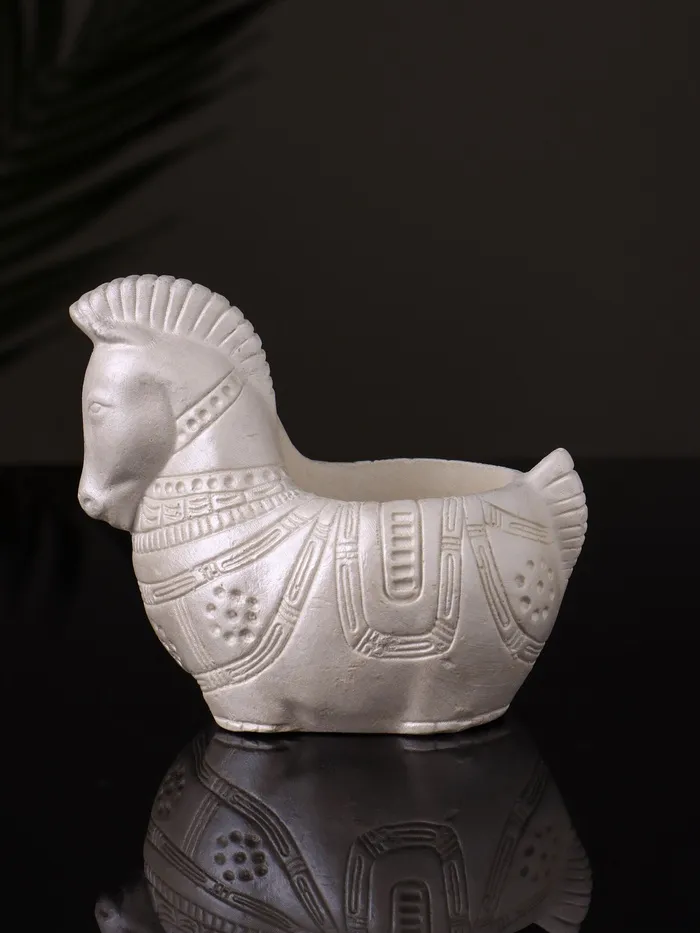 Кашпо гипс «Лошадка с орнаментом», 8×9×6 см, перламутр — Характеристики