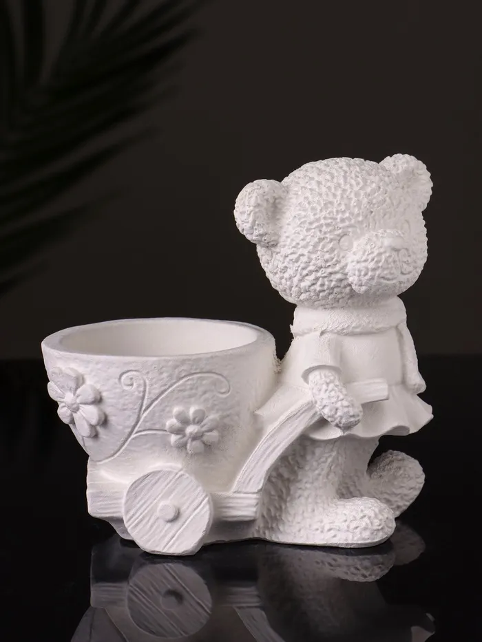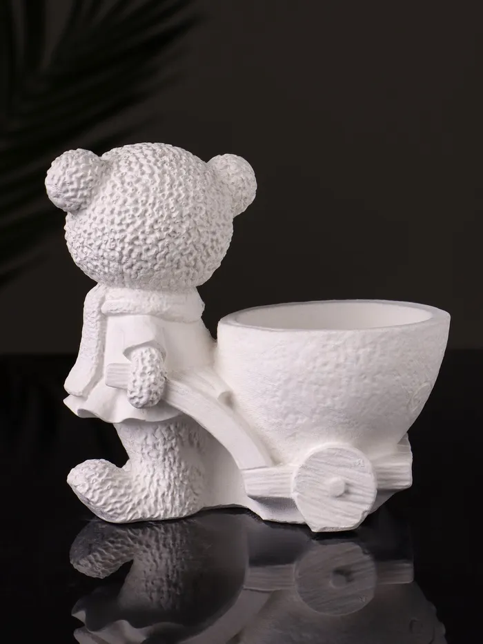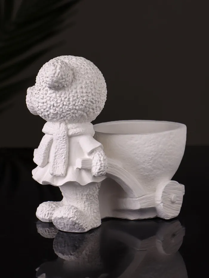 Кашпо гипс «Медведица с тележкой», 10×10×6 см, натуральный — Характеристики