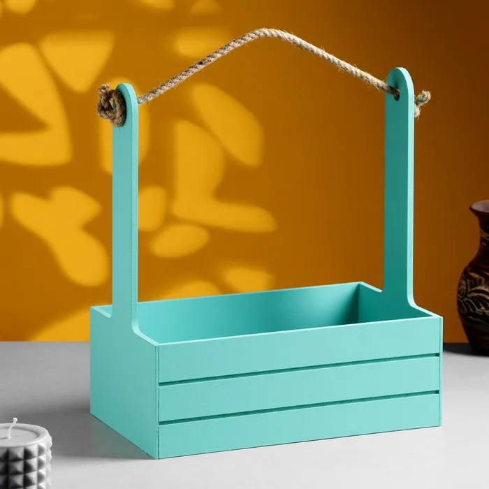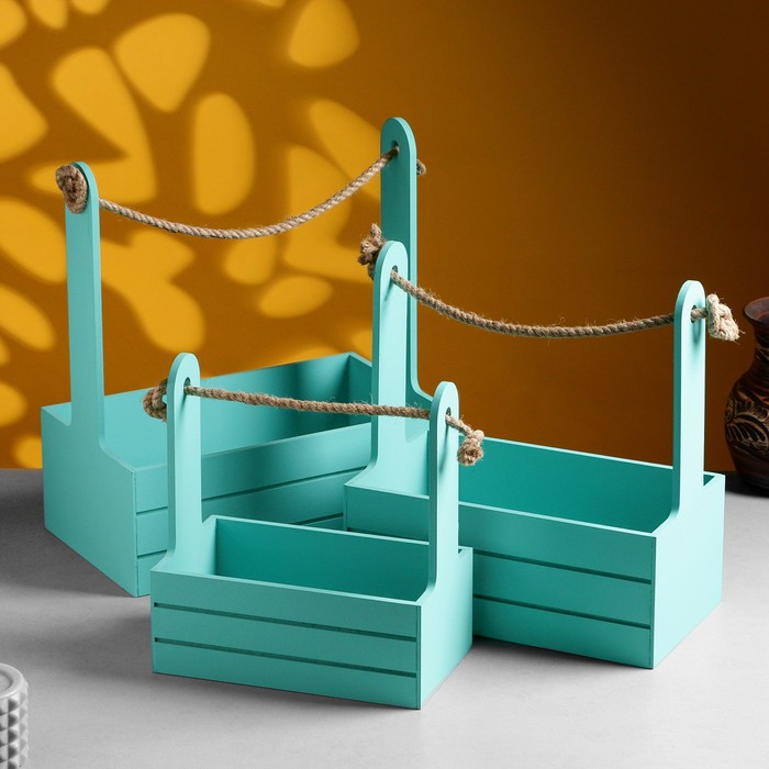 Кашпо - ящик для цветов «Аром», ручка - канат, набор 3 шт., бирюзовый — Характеристики