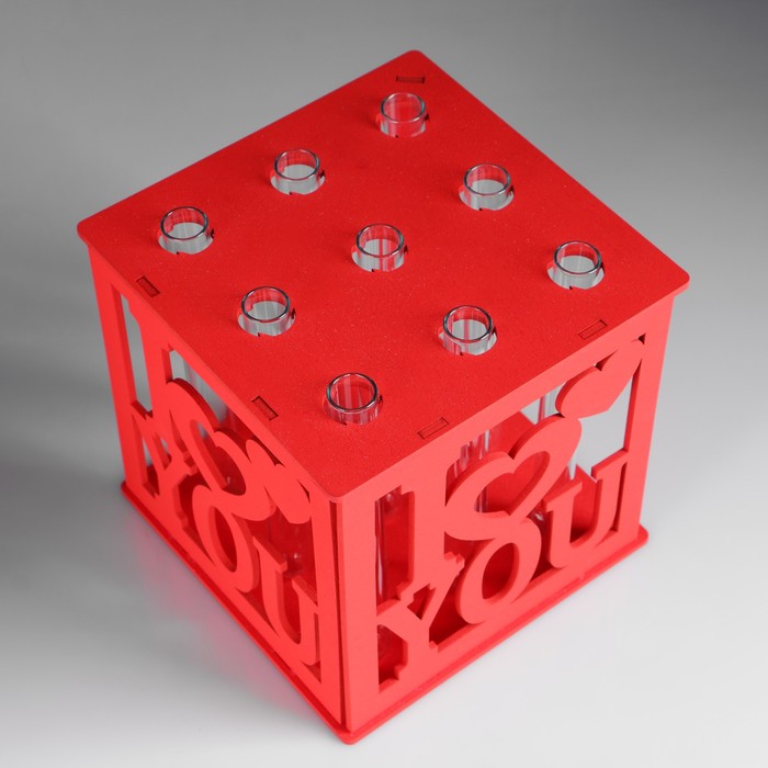 Кашпо - ящик для цветов «Я тебя люблю», 15×15×15 см, деревянное, 9 колб, красное — Характеристики