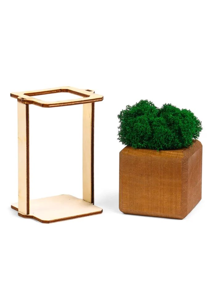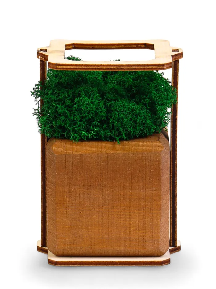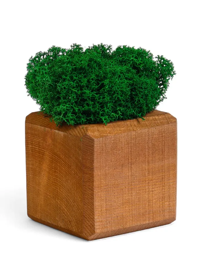 Деревянное кашпо со стабилизированным мхом «Бриовуд» — это самодостаточная миниатюрная экокомпозиция для современного интерьера. Гармоничное сочетание фактур дерева и мха создает лаконичный природный акцент, который сохраняет свежесть годами.