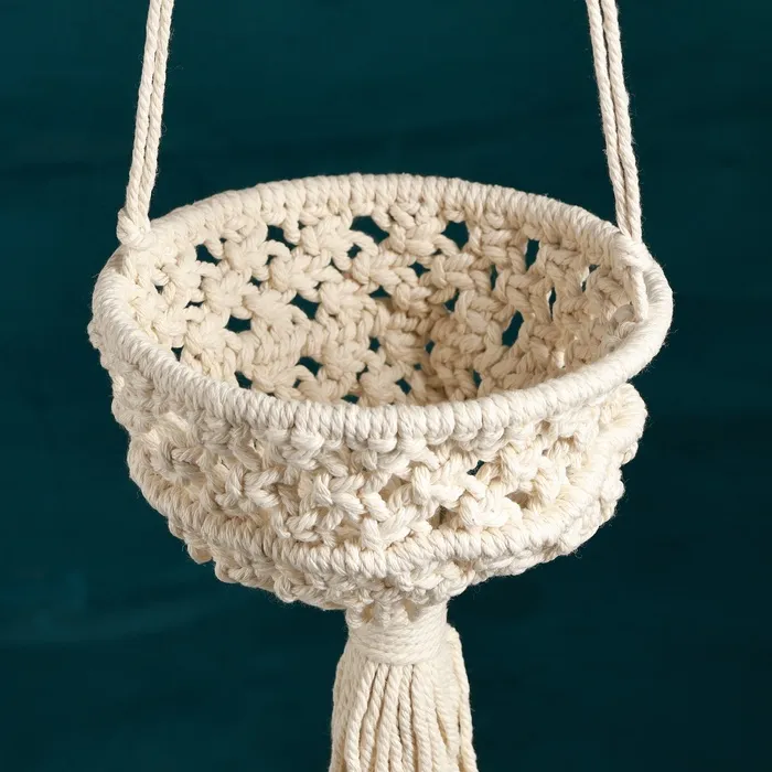 Кашпо - макраме «Луна», 15×15×12 см, текстиль, подвесное, бежевое — Характеристики