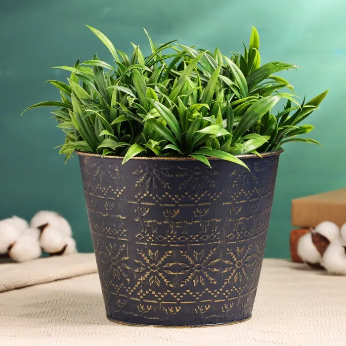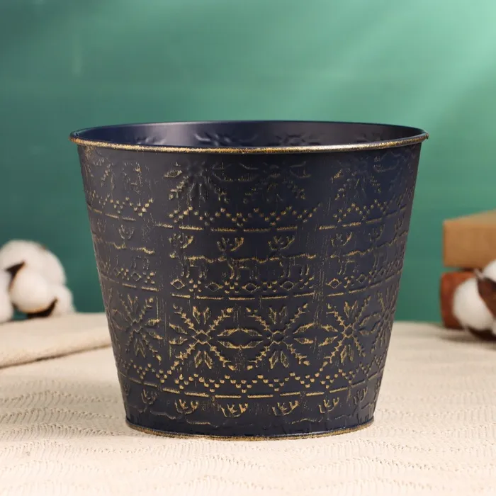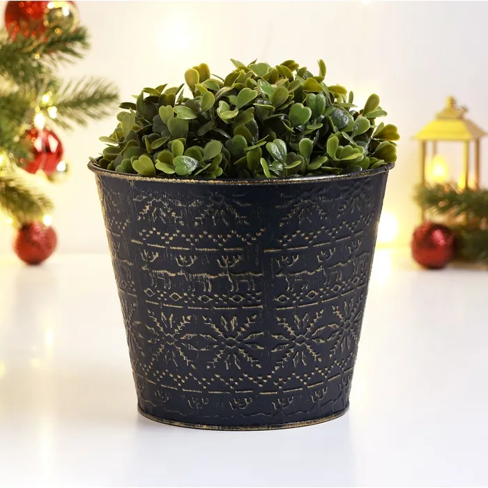 Кашпо «Олени и снежинки», 17×17×14 см, синее с позолотой — Характеристики
