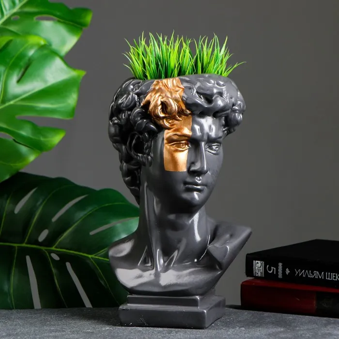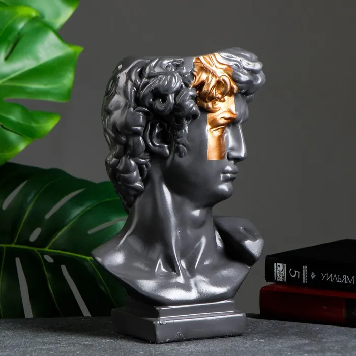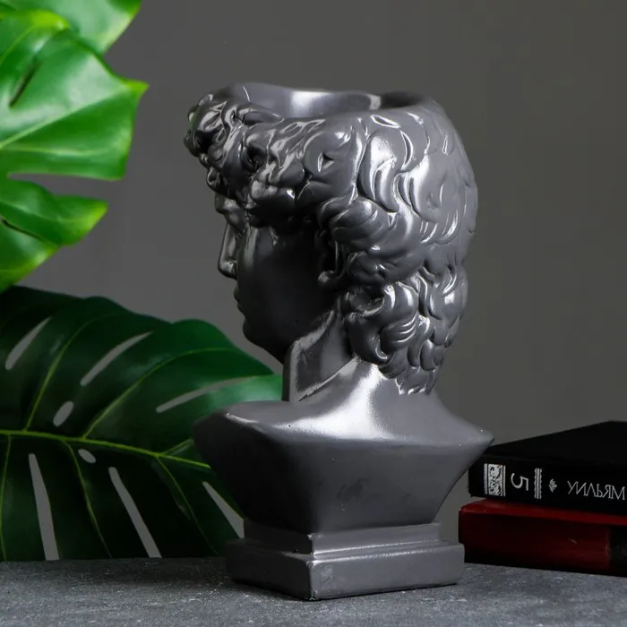 Кашпо - органайзер "Бюст Давида" большой, серый, бронза, 28см — Характеристики