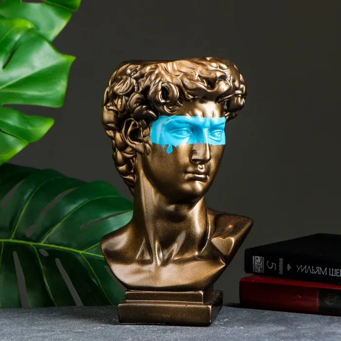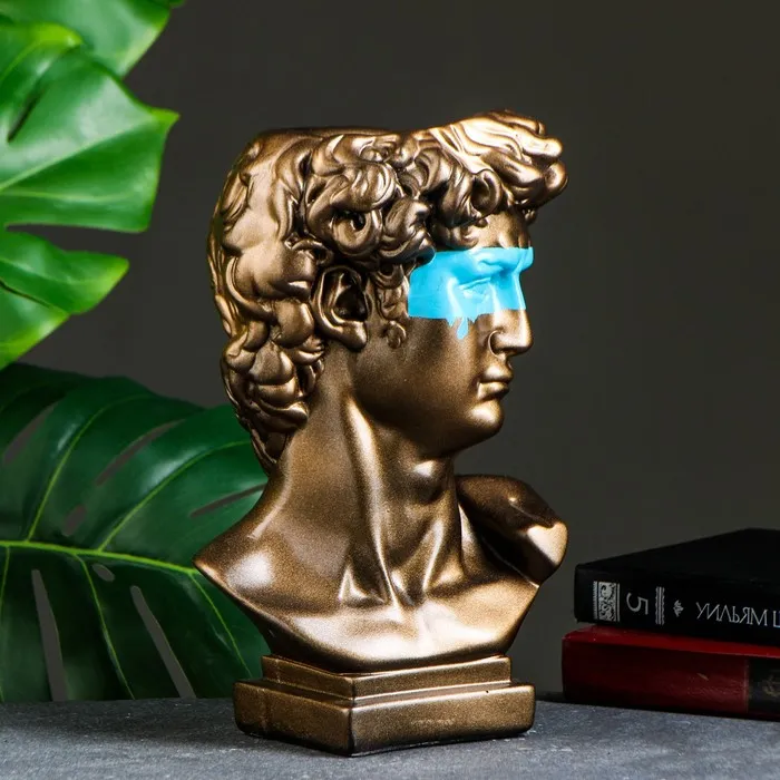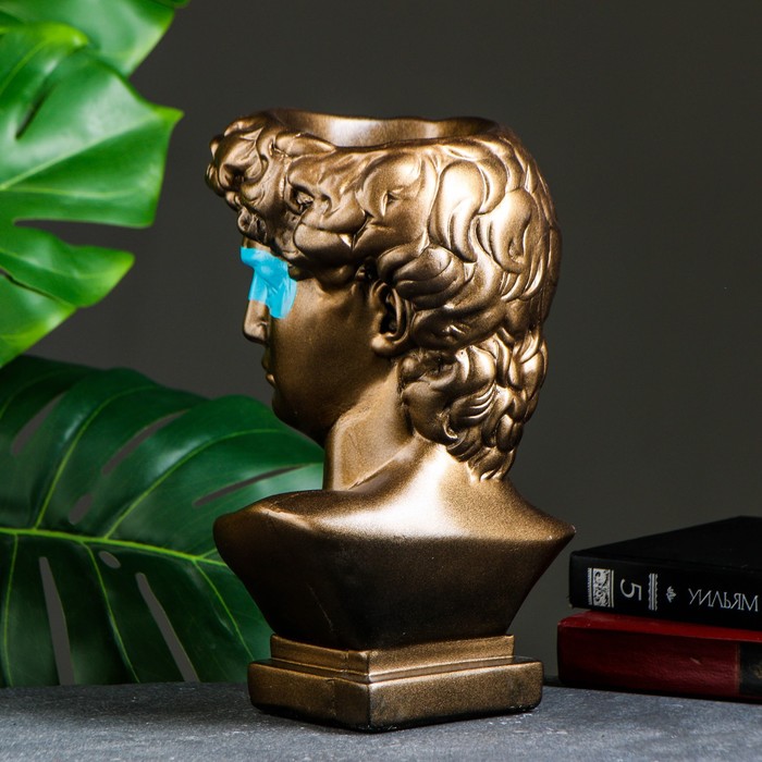 Кашпо - органайзер "Бюст Давида с маской" большой, бронза, бирюзовый, 28см — Характеристики