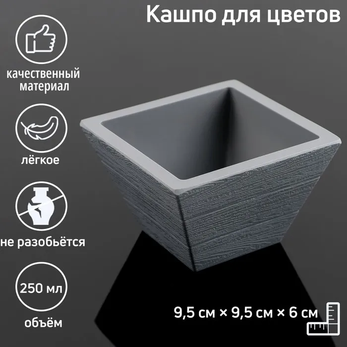 Кашпо пластиковое для цветов «Дощатое», 250 мл, цвет серый — Характеристики