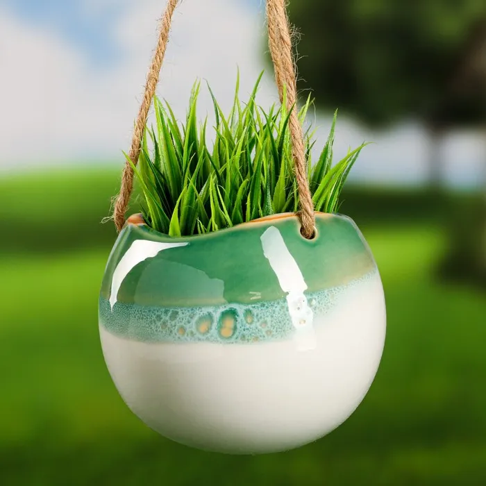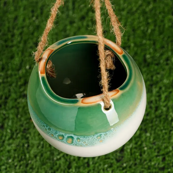 Кашпо подвесное "Круглое" зеленое, 11х11х9см — Характеристики