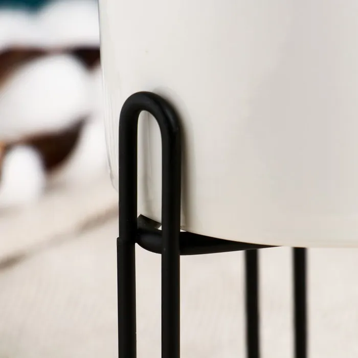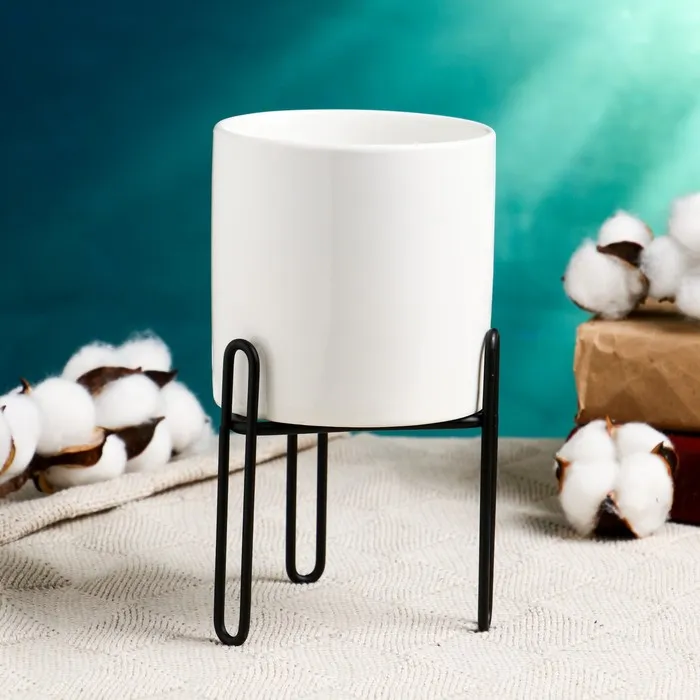 Кашпо «Цилиндр», 10×10×18 см,600 мл, белое на чёрной подставке — Характеристики