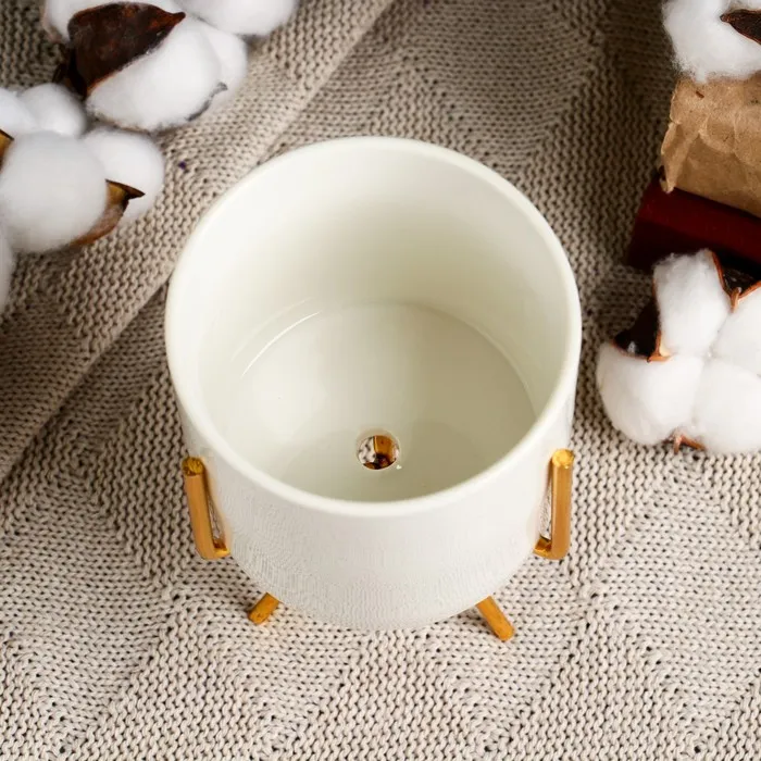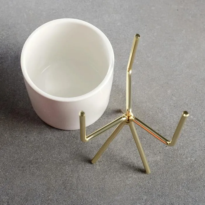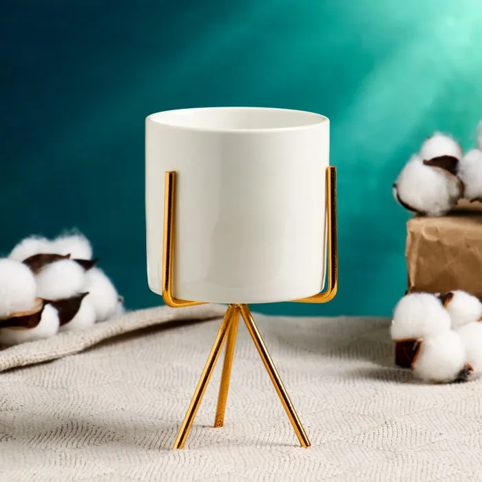 Кашпо "Цилиндр" белое, на золотой подставке, 15х8х8см — Характеристики