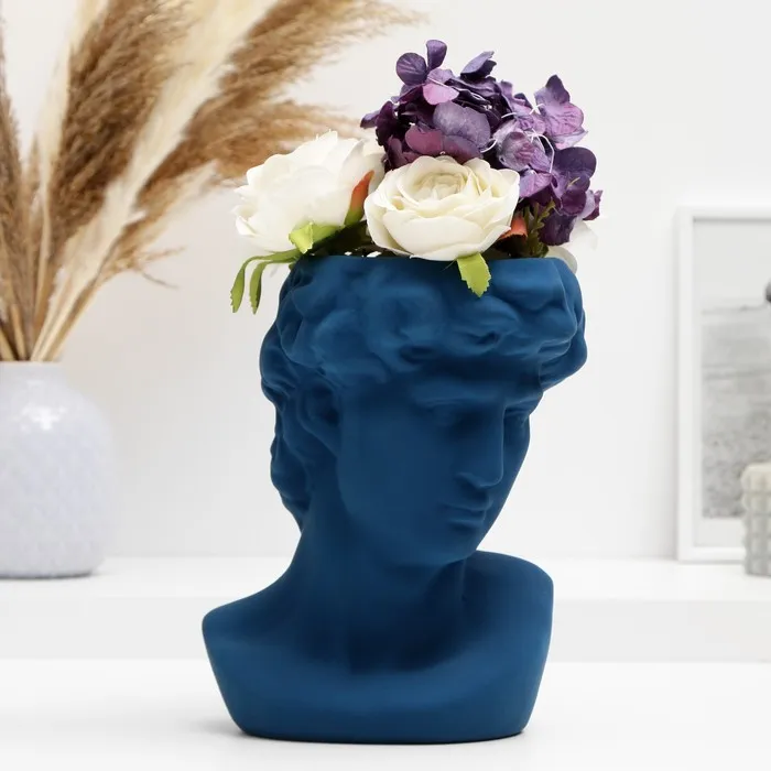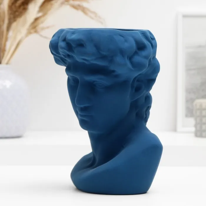 Кашпо - ваза "Голова Давида" синее, 22*16*14 см — Характеристики