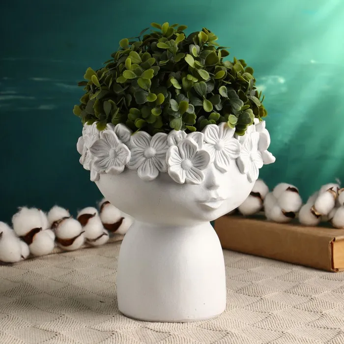 Кашпо - ваза "Мальчик с веночком" белое, 19х19см — Характеристики