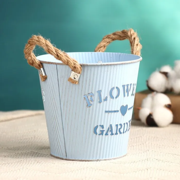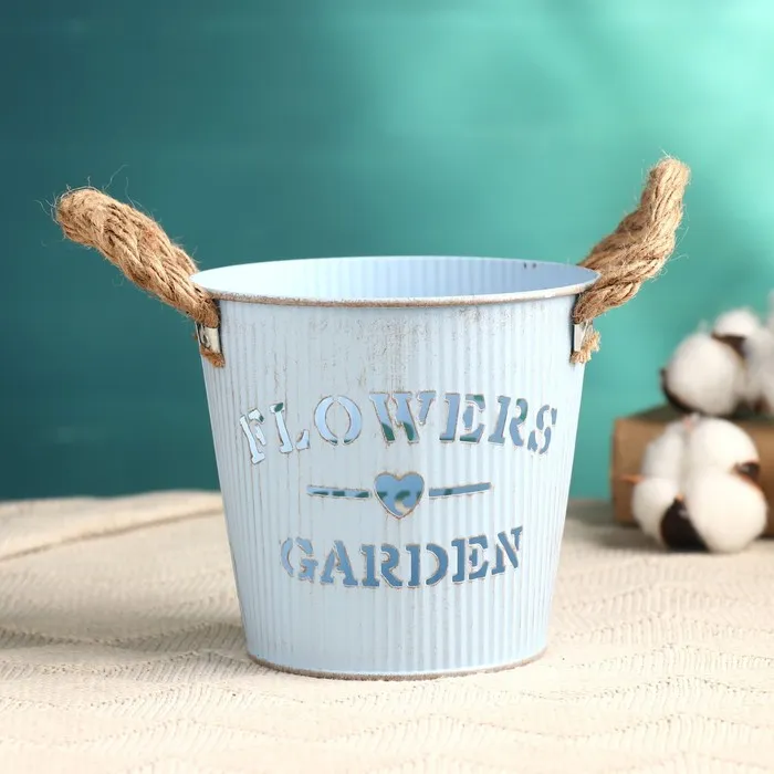 Кашпо «Ведёрко цветочный сад», 13×13×12 см, голубое — Характеристики