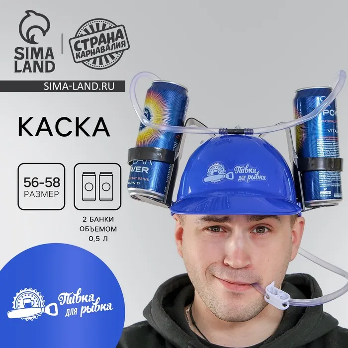 Для тех, кто привык совмещать практичность, оригинальную идею и красоту исполнения в одном аксессуаре, мы разработали каска с отверстиями под банки «Пивка для рывка!». Теперь ваши руки свободны для более важных дел, а любимый напиток всегда рядом и в любой момент доставит вам удовольствие! Каска с отверстиями под банки «Пивка для рывка!» настоящая находка для тех, кто не хочет прятать свою индивидуальность за обычными скучными вещами. Оригинальная меткая надпись, дополненная подходящим рисунком, непременно обратит внимание публики на вас и вызовет и интерес окружающих. А каким замечательным подарком может стать такая полезная вещь!